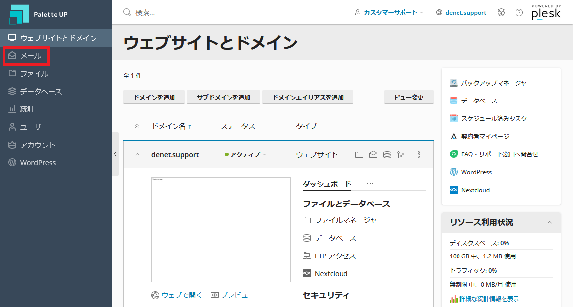 1 コントロールパネルにログイン後、「メール」をクリックします。