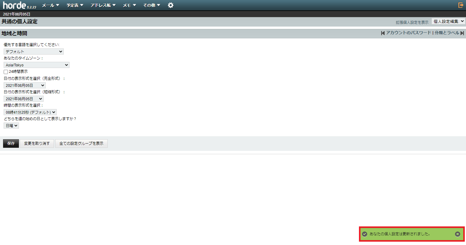 7 「あなたの個人設定は更新されました。」が表示されましたら、変更完了です。