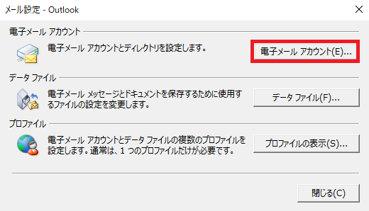 「メール設定」が表示されましたら、「電子メール アカウント」をクリックします。