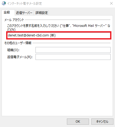 「インターネット電子メール設定」が表示されましたら、新サーバー用のメールアカウントとわかるように修正します。