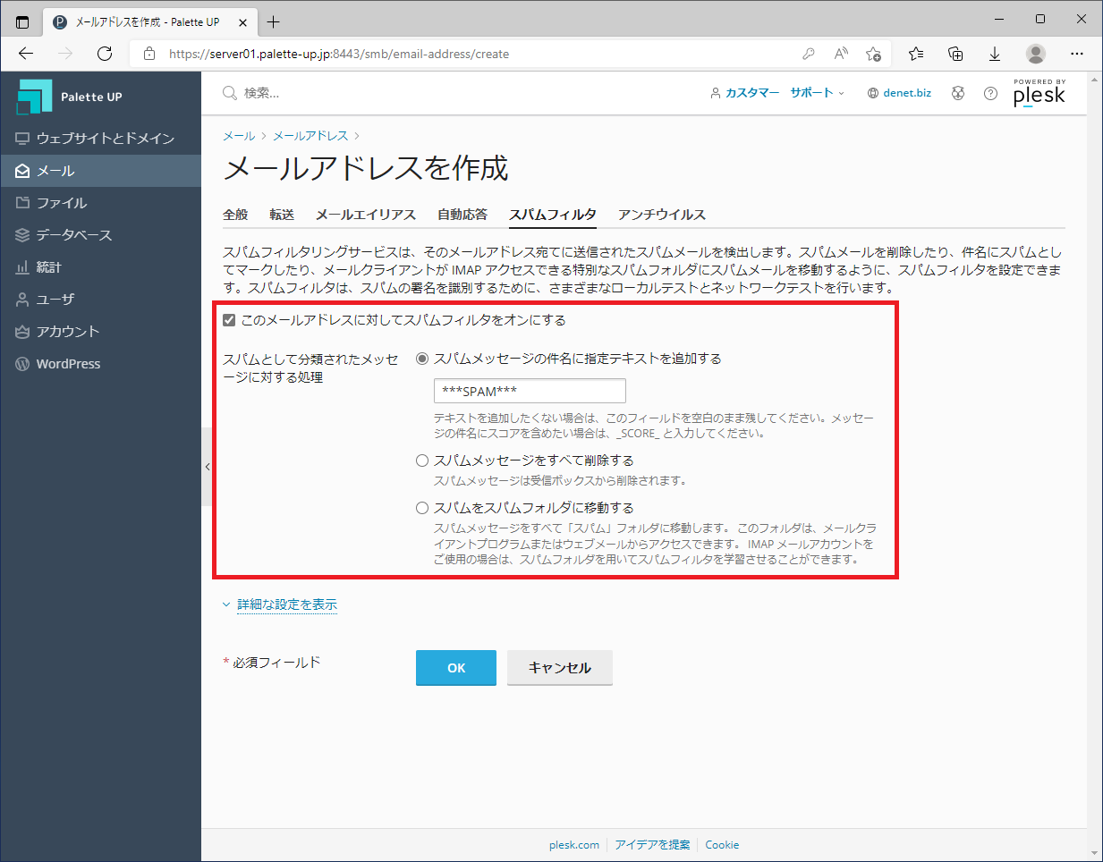 5 スパムフィルタの設定ができます。設定は後から変更もできますので、様子を見ながら、設定をご変更いただくことをおすすめいたします。