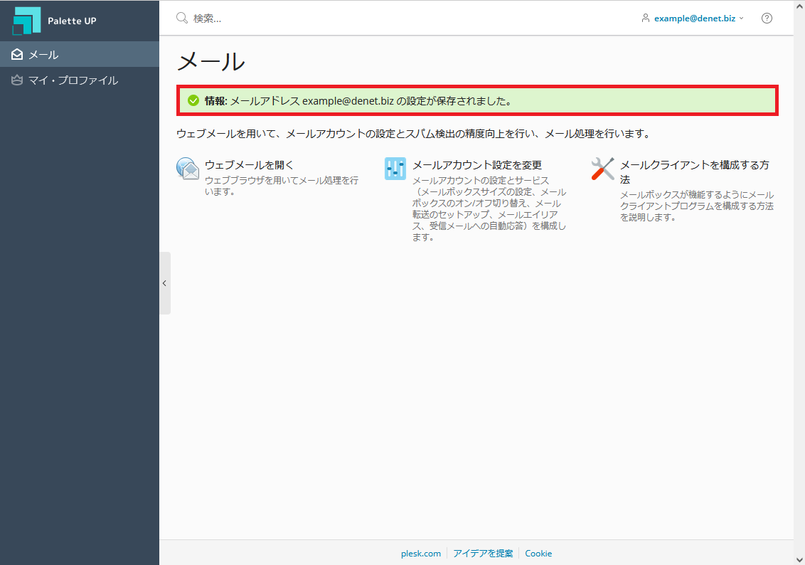 Palette UPではメールユーザー用のコントロールパネルをご提供しております。メールユーザー用のコントロールパネルではパスワードや転送設定等をご変更いただけます。