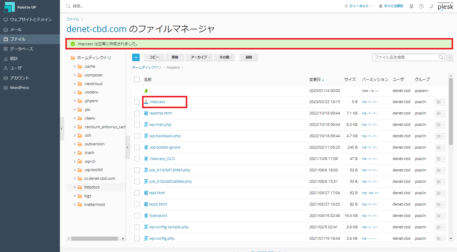 Palette UPではコントロールパネルで.htaccessファイルの作成と設置が可能です。