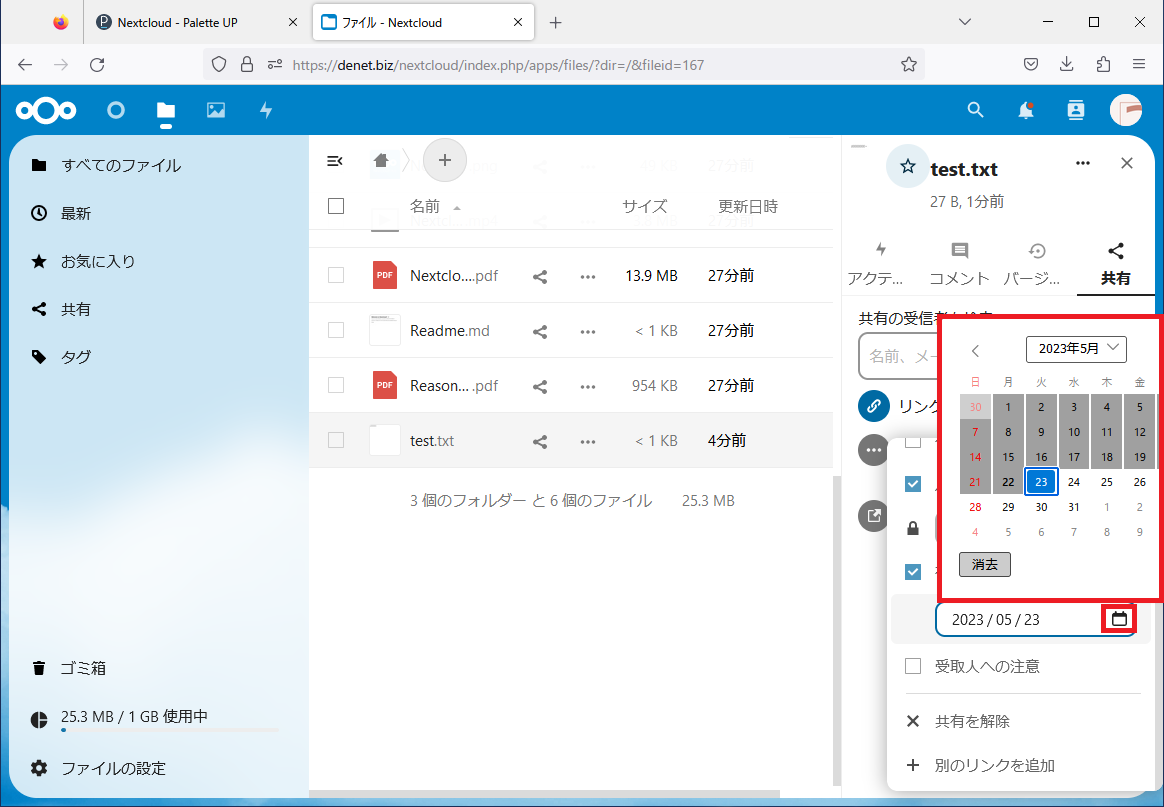 共有されるURLリンクの公開期限を設定される場合は「有効期限を設定」にチェックを入れます。